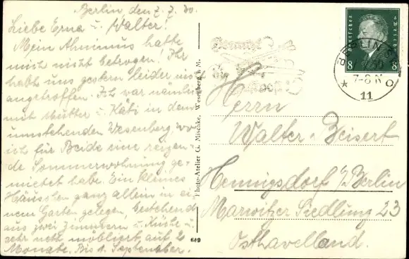 Zustand, siehe Scan, gelaufen, 1930 - ca 14 cm X 9 cm