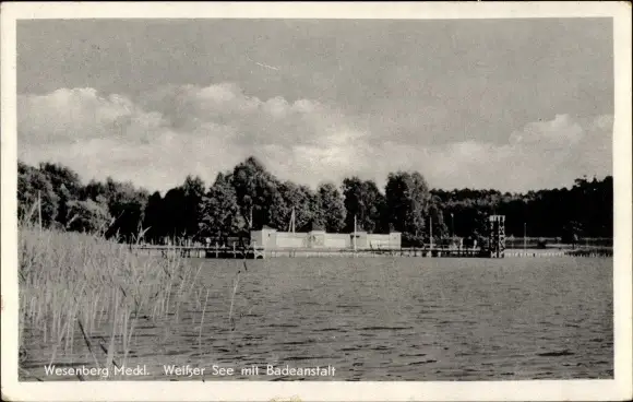 Ak Wesenberg in Mecklenburg, Weißer See mit Badeanstalt