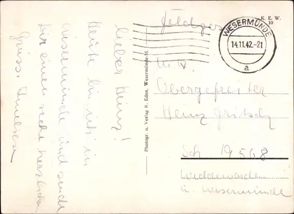 Zustand, siehe Scan, gelaufen, 1942 - ca 15 cm X 11 cm