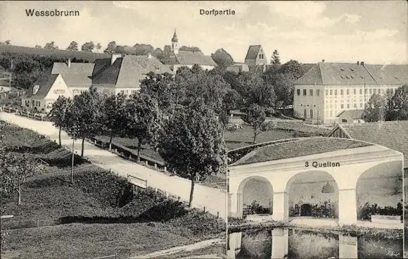 Ak Wessobrunn in Oberbayern, Dorfpartie, 3 Quellen