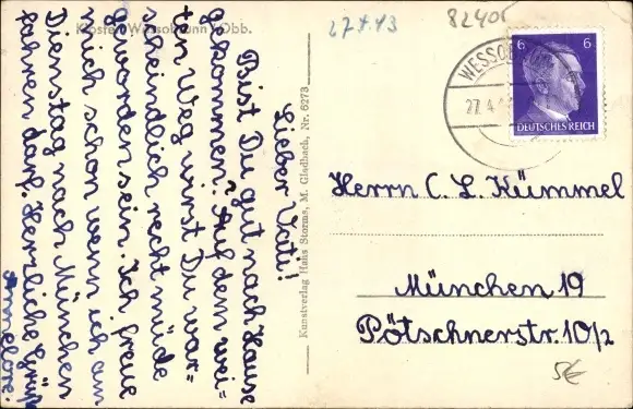 Zustand, siehe Scan, gelaufen, 1943 - ca 14 cm X 9 cm