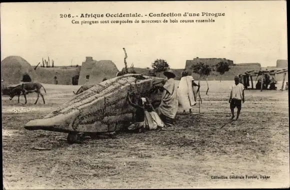 Ak Westafrika, Bau eines Bootes aus Holzteilen
