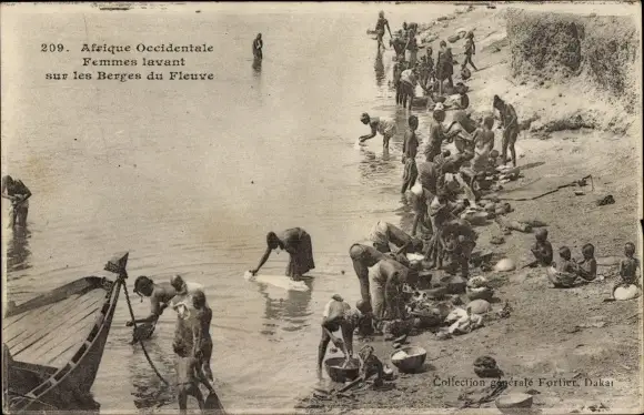 Ak Westafrika, Frauen waschen sich am Ufer des Flusses