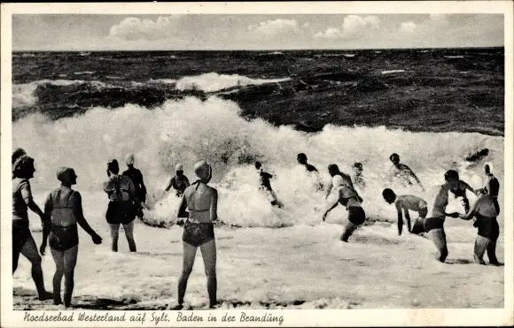 Ak Westerland Insel Sylt, Baden in der Brandung