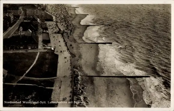 Ak Westerland auf Sylt, Luftaufnahme, Strand