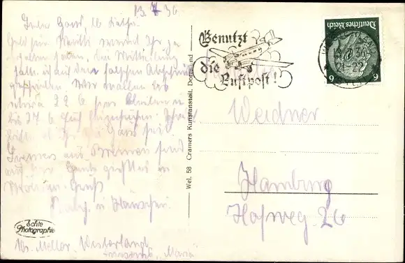 Zustand, siehe Scan, gelaufen, 1936 - ca 14 cm X 9 cm