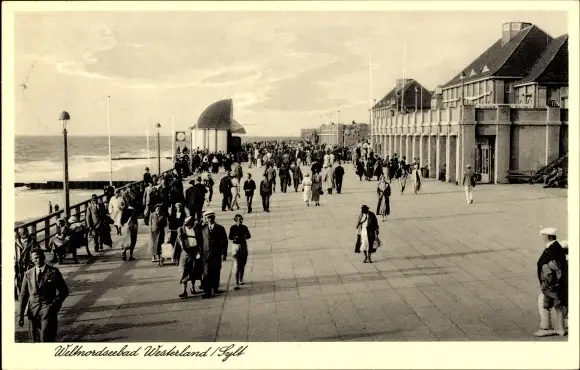 Ak Westerland auf Sylt, Promande, Passanten, Strand