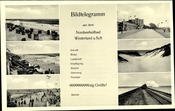 Ak Westerland auf Sylt, Strand, Dünen, Bildtelegramm, Gleise