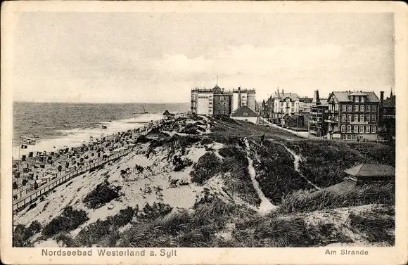 Ak Westerland auf Sylt, Strand, Dünen, Gebäude
