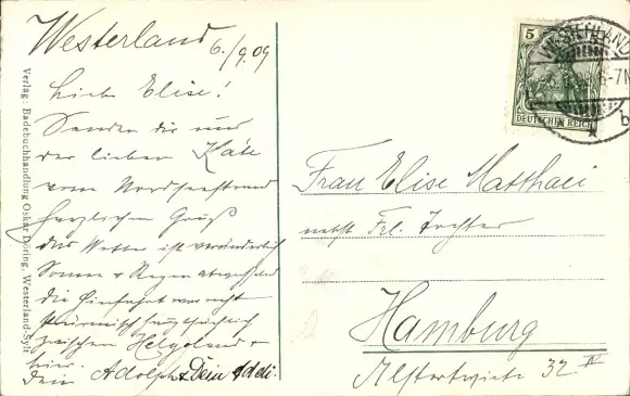 Zustand, siehe Scan, gelaufen, 1909 - ca 14 cm X 9 cm