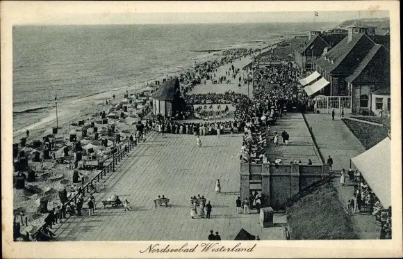 Ak Westerland auf Sylt, Strand, Promenade, Pavillon