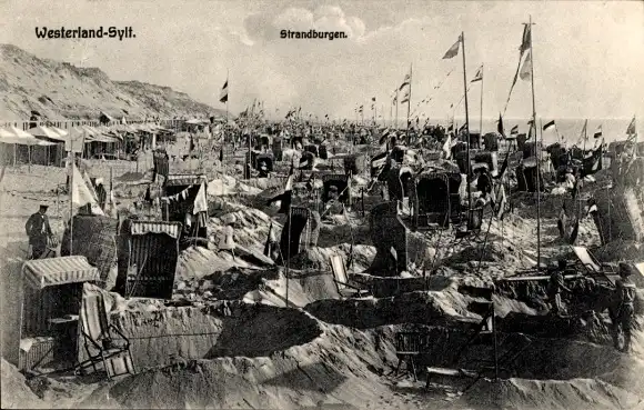 Ak Westerland auf Sylt, Strand, Strandburgen, Strandkörbe