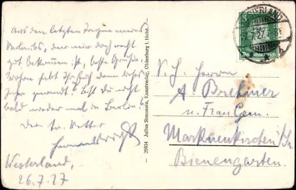 Zustand, siehe Scan, gelaufen, 1927 - ca 14 cm X 9 cm