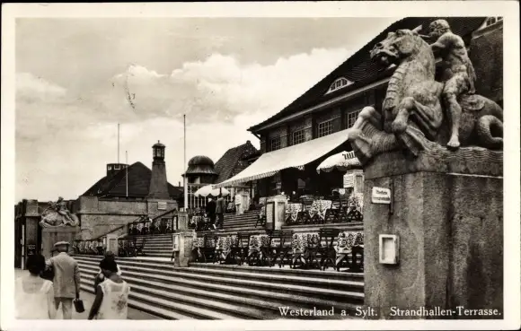 Ak Westerland auf Sylt, Strandhallen-Terrasse