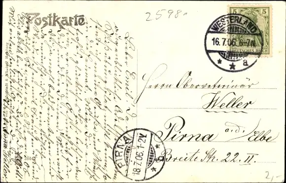 Zustand, siehe Scan, gelaufen, 1906 - ca 14 cm X 9 cm