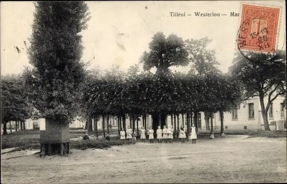 Ak Westerloo Westerlo Flandern Antwerpen, Tilleul, Mädchen vor Bäumen und Gebäude