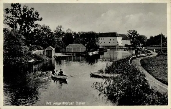 Ak Węgorzewo Angerburg Ostpreußen, Angerburger Hafen mit Schloss