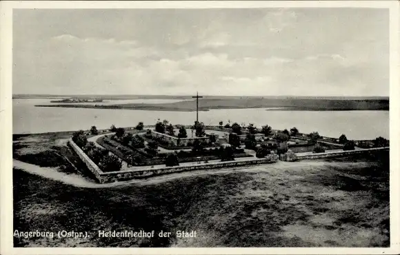 Ak Węgorzewo Angerburg Ostpreußen, Heldenfriedhof, Kreuz