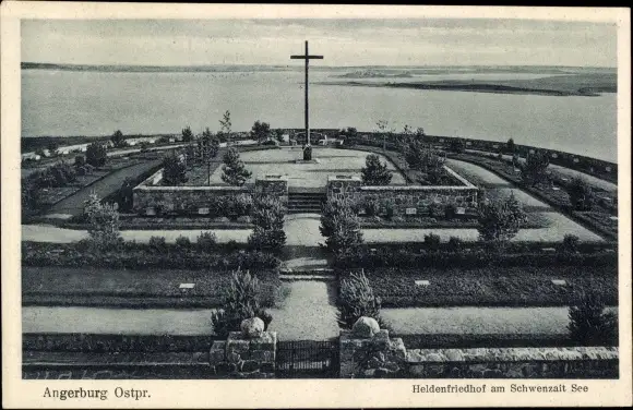 Ak Węgorzewo Angerburg Ostpreußen, Heldenfriedhof am Schwenzaitsee
