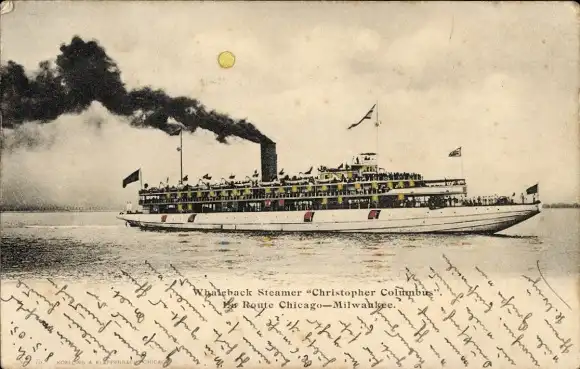 Ak Whaleback-Dampfer Christopher Columbus, Route Chicago-Milwaukee