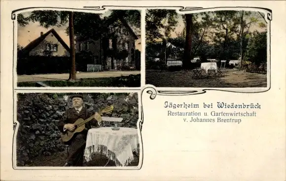 Ak Wiedenbrück in Westfalen, Restauration Jägerheim, Gastwirt mit Gitarre