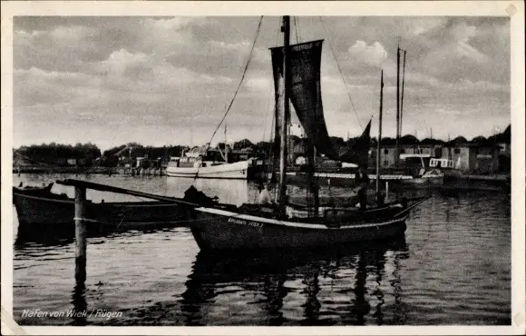 Ansichtskarte, Postkarte, Hafen, Schiffe, Boote, Dampfer, Boot
