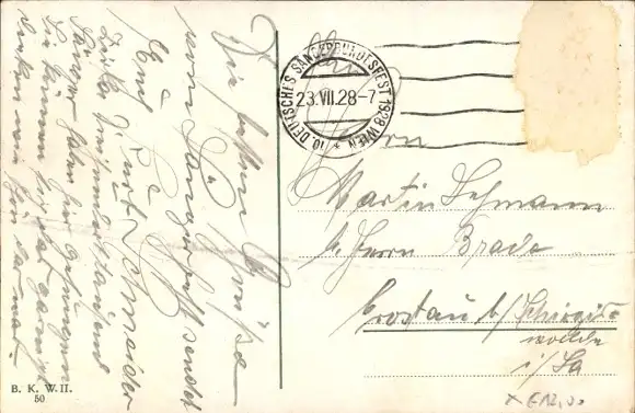 Zustand, siehe Scan, gelaufen, 1928- BKWI 50 - ca 14 cm X 9 cm