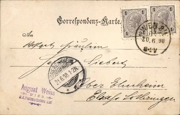 Zustand, siehe Scan, gelaufen, 1898 - ca 14 cm X 9 cm