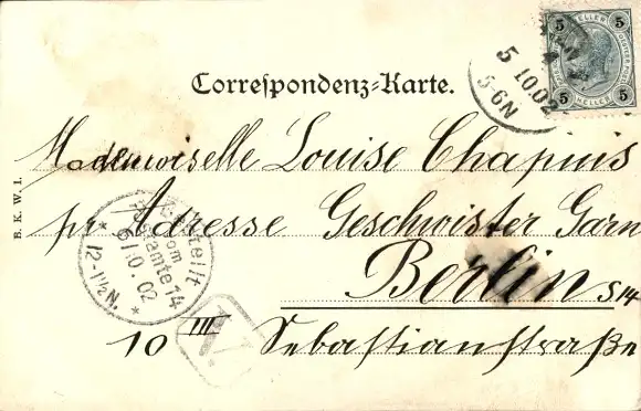 Zustand, siehe Scan, gelaufen, 1902 - ca 14 cm X 9 cm