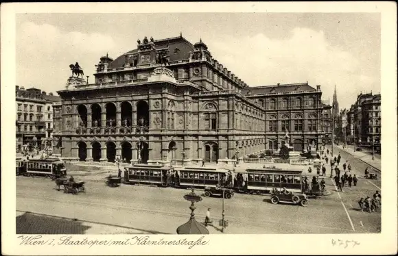 Ak Wien 1 Innere Stadt, Kärntnerstraße, Staatsoper, Straßenbahnen
