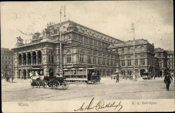 Ak Wien 1 Innere Stadt, K.k. Hof-Oper, Straßenbahn, Kutsche