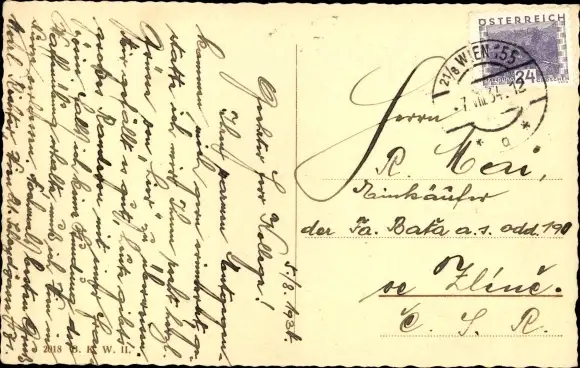 Zustand, siehe Scan, gelaufen, 1934 - ca 14 cm X 9 cm