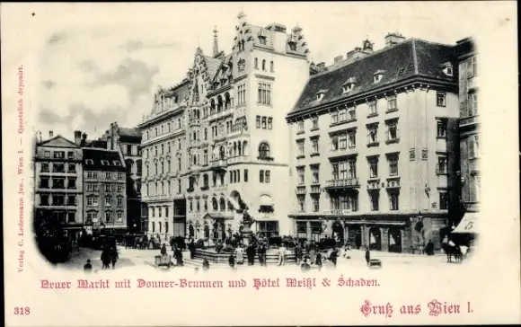 Ak Wien 1 Innere Stadt, Neuer Markt mit Donnerbrunnen und Hotel