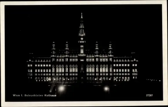 Ak Wien 1. Innere Stadt Österreich, Beleuchtetes Rathaus