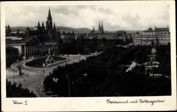 Ak Wien 1 Innere Stadt Österreich, Parlament mit Volksgarten