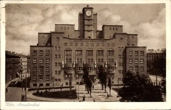 Ak Wien 10., Blick auf das Amalienbad, Vorplatz