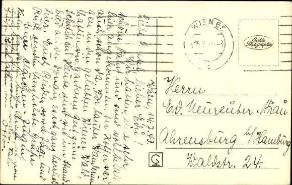 Zustand, siehe Scan, gelaufen, 1943 - ca 14 cm X 9 cm