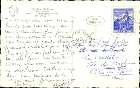 Ak Wien 19 Döbling Grinzing, Grinzinger Backhendl