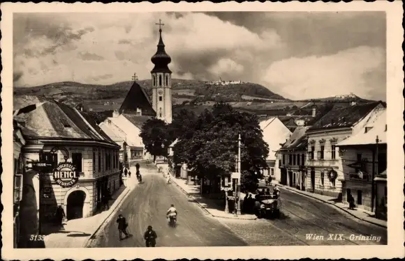 Ak Wien 19 Döbling Grinzing, Höchster Heuriger Hengl, Straßenpartie