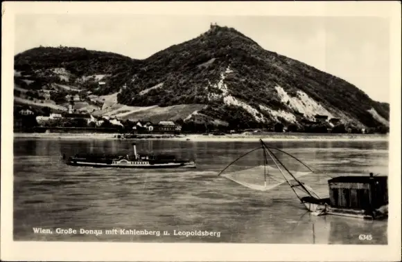 Ak Wien 19. Döbling Österreich, Donau mit Kahlenberg und Leopoldsturm, Fischnetz