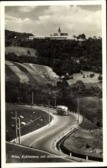 Ak Wien 19. Döbling Österreich, Kahlenberg mit Höhenstraße, Reisebus
