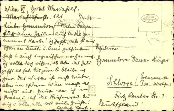 Zustand, siehe Scan, gelaufen, 1936 - ca 9 cm X 14 cm