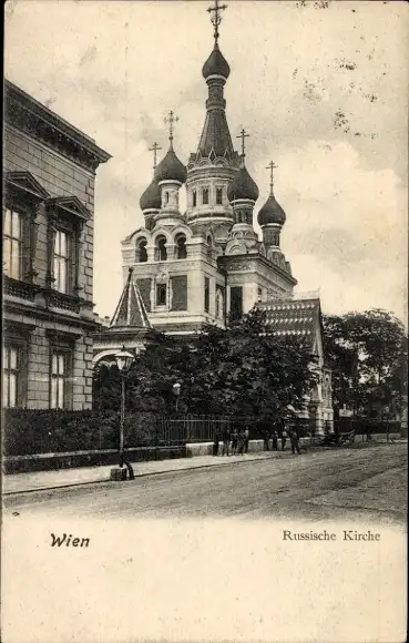Ansichtskarte, Postkarte, Kirche, Stadtkirche, Gotteshaus, Sakralbau, Wien