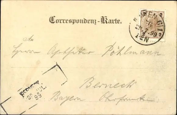Zustand, siehe Scan, gelaufen, 1899 - ca 14 cm X 9 cm