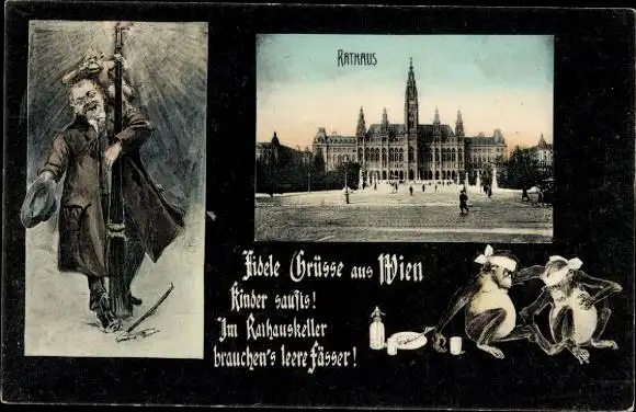Ak Wien, Betrunkener Mann, Rathaus, Rathauskeller, Affen