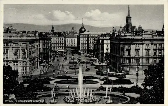 Ak Wien, Blick über den Schwarzenbergplatz, Fontänen