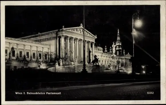 Ak Wien Österreich, Ansicht des Parlamentes bei Nacht