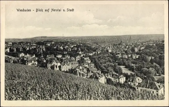 Ak Wiesbaden in Hessen, Blick auf Nerotal und Stadt