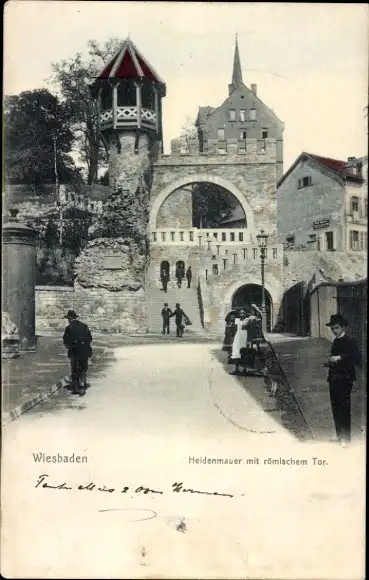 Ak Wiesbaden in Hessen, Heidenmauer, Römisches Tor