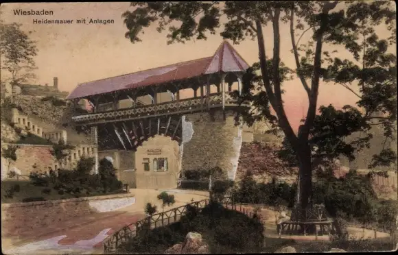 Ak Wiesbaden in Hessen, Heidenmauer mit Anlagen